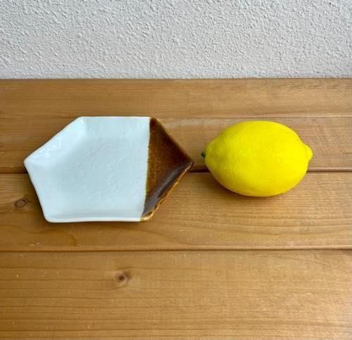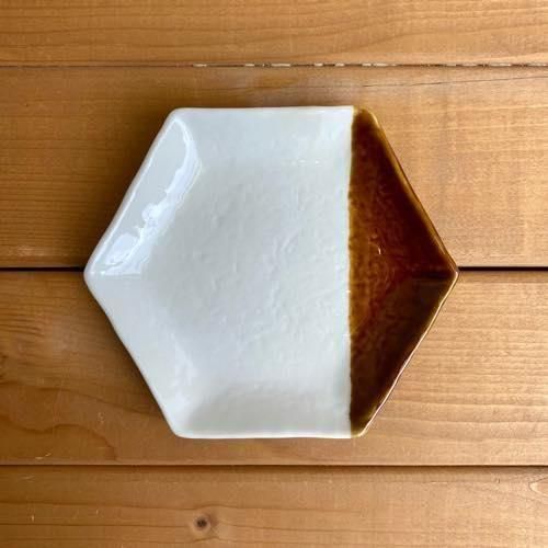 瀬戸焼 m.m.d. / 取り皿 / 六角皿 / アメ / 幅 約15.5cm【T10406】