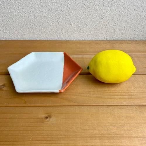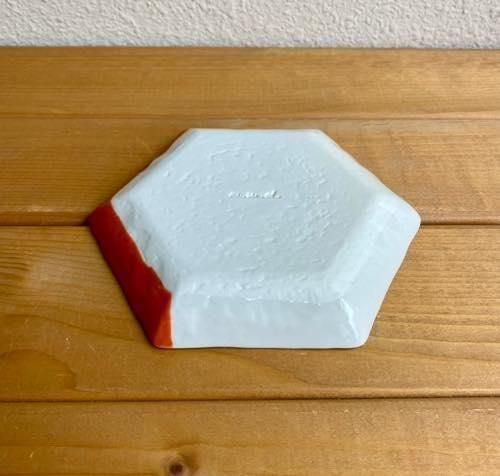 瀬戸焼 m.m.d. / 取り皿 / 六角皿 / 朱 / 幅 約15.5cm【T10407】
