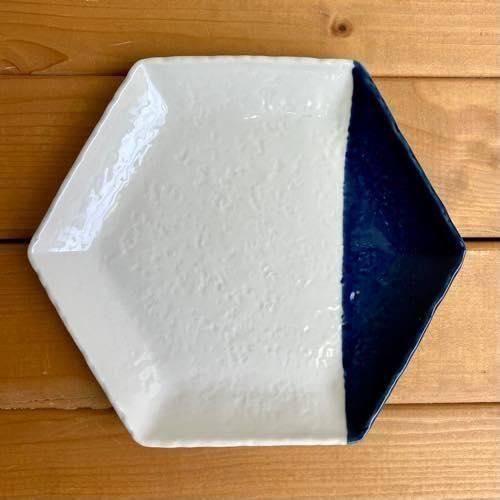 瀬戸焼 m.m.d. / パンプレート / 六角皿 (大) / ルリ / 幅 約21.5cm【T10416】