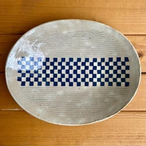牧谷窯 (鳥取) / 杉本義訓 / 練り込み / 大きな楕円皿 / 幅27.5cm【T10470】